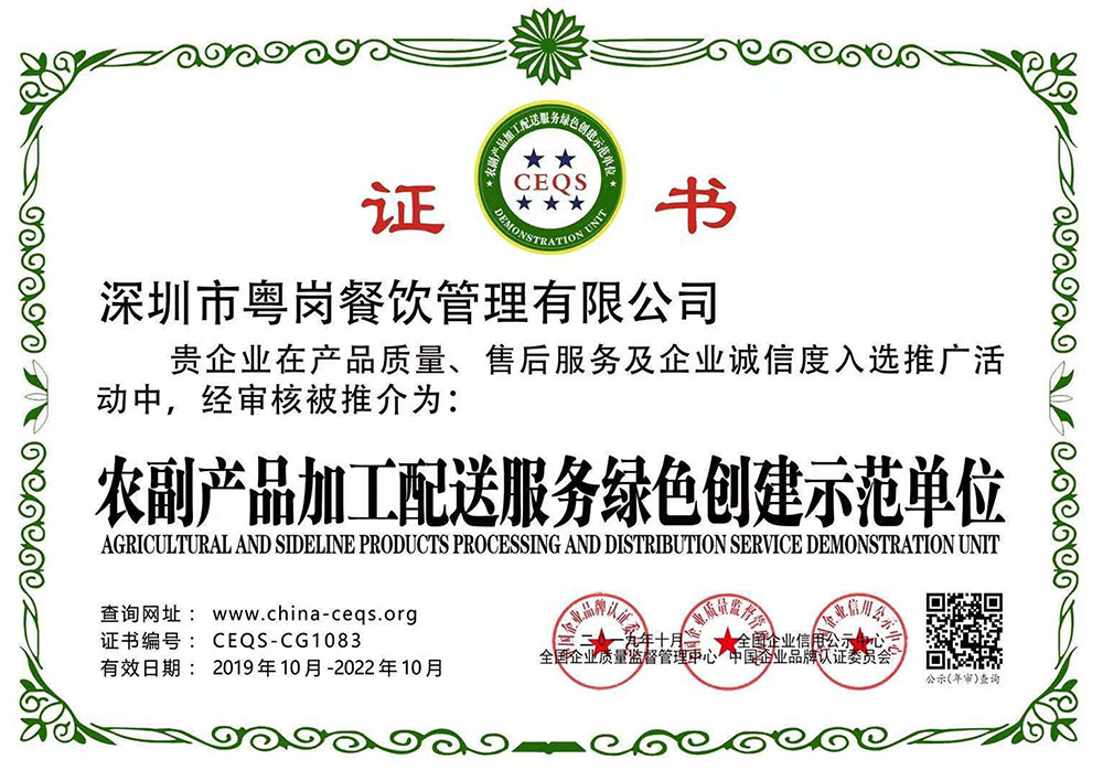 深圳市粵崗餐飲管理有限公司,是一家集蔬菜種植和農副產品配送為一體的專業型餐飲公司,主要為學校、工廠企事業機關單位提供蔬菜和農副產品配送服務。公司自成立以來始終以質優價廉、服務至上為原則,嚴格按照ISO:9001國際標準體系進行管理。同時建立了行業領先的配送中心、大型冷庫和保鮮庫、檢測中心以及專業化的配送團隊,能長期安全、穩定、準時的配送貨物。我們所有蔬菜均經過初步加工、無黃葉,無泥沙等雜質,利用率達97%以上...保障向用戶提供的各類食材的衛生和質量。公司為了適應不同客戶的需求,配有專業人員和配送車輛,實行“一對一”的服務體制,一心一意的為客戶服務,秉承粵崗誠實守信、服務第一、客戶至上的服務標準,真正讓客戶花最少的錢吃最好的菜。粵崗多年來何以欣欣向榮,因為我們知道只有勇于擔當責任,才能承擔更大的責任,就是因為 粵崗員工貫徹公司態度決定一切、細節決定成敗的真理,從質量抓起,從服務做起,才創造了如今的規?;?、統一性配送、專業化服務的粵崗。